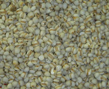 5.葱丁、姜末加盐、料酒、食油同薏米拌匀;