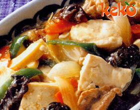 八宝豆腐:'1.嫩豆腐去上边皮,放在洁净的纱布上,挤出豆腐汁(豆渣不用),盛入大碗;2.鸡胸脯肉洗净,入锅煮熟,排剁成末;3.熟火腿切成末;4.干贝洗净,入锅蒸...