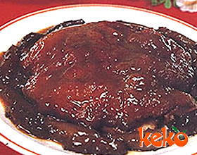 海参扒肘子:'1.带皮猪蹄膀肉用沸水氽洗干净,皮朝下放墩上,切3厘米见方的花刀,刀深1/2,放在有红曲米水的酱汤中慢火炖半小时,取出皮朝下盛在大碗内。加原汤上笼...