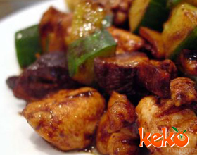 豆豉鸡:'1.将仔鸡(净仔鸡半只)剁成约2.5厘米见方的块洗净,用湿淀粉20克(淀粉10克加水)上浆。2.将勺内加油,烧热放入豆豉末、黄酱炒香,放入鸡块煸炒,再...