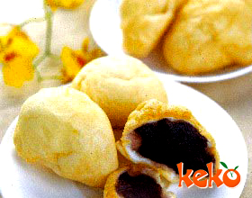炸雪丽豆沙:'1.蛋清放盘中抽打成泡沫状,加干淀粉搅匀成雪丽糊。2.豆沙馅做成10个直径2.5厘米的丸子,蘸雪丽糊旋转后轻轻提起;放温植物油中炸透,呈乳白色时盛入盘...    详细介绍
