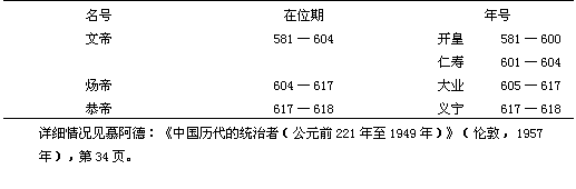 表1隋帝及其在位期