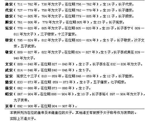 表2唐皇室家系简表