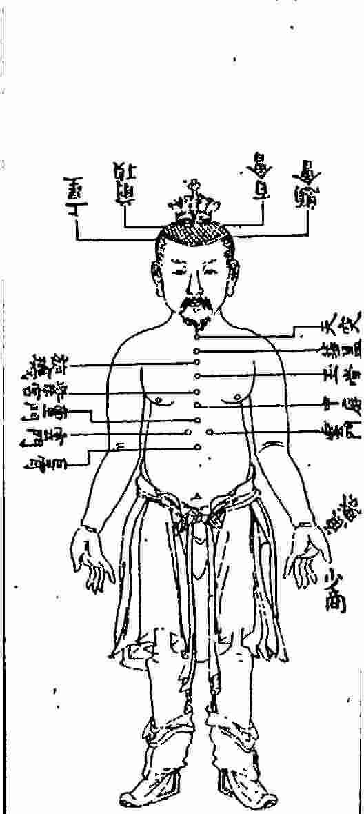 百会一穴,在前頂後一寸半,頂中心。督脈、足大(按:應為“太”)陽之會。主療脱肛,風癎,青風,心風,弓角反張、羊鳴多哭、言語不擇、發時即死、吐沫、心中熱悶,頭風,多睡,心煩,驚悸,無心力,志(按:據《針灸大成·督脈考正穴法》所引《銅人》原文,應為“忘”,亦通。)前失後,喫食無味,頭重,飲酒面赤,鼻塞。針入二分,得氣即泻。如灸,數至百五,即停三五日。訖,繞四畔以三稜針刺令出血,以井花水淋之,令氣宣通。不得一向火灸,恐拔氣上,令人眼暗。忌酒、麵、猪、魚、蕎麥、蒜韭等。