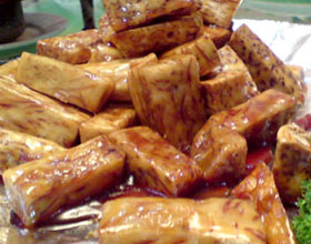 6.上菜时随带冷开水碗,把山药在冷水里蘸一下再食。