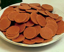 3.移入缸中,浸渍24小时左右。捞出,沥尽糖液,放在烤盘上,送入烘房内,在60~65度下烘烤20~24小时,至不粘手,含水量降至18~22%时即为成品。