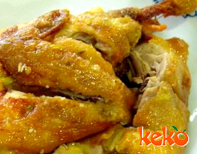 关记烧鸡:'1.选取每只重约1500克的鸡5只,宰杀,煺毛,在肛门处开一6 厘米长的小口,取出内脏,将鸡腿插入鸡腹中,将鸡头盘于翅下,依次盘好5 只鸡,晾一会备用...    详细介绍