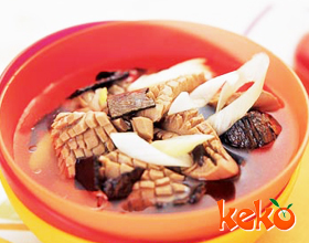 杜仲猪腰汤:'1.杜仲去粗皮;2.将杜仲、鸡血藤、桑寄生、猪腰、生姜、红枣洗净;3.猪腰去脂膜,切片;4.把全部用料一齐放入瓦锅内,加清水适量,武火煮沸后,文火煮...