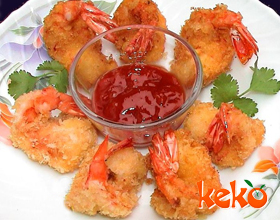 5.炸好的虾排按梅花形排列在盘中,可随带花椒盐或辣酱油、番茄酱上桌。
